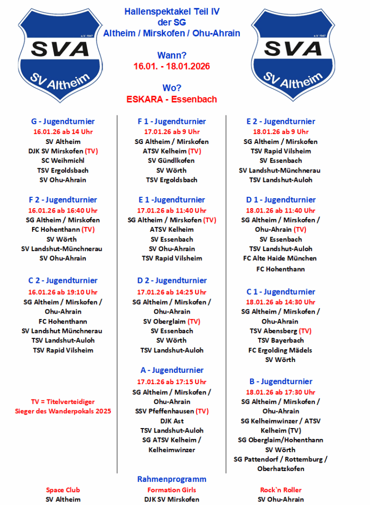 Da es bereits einige Anfragen gegeben hat, gibts hier die offizellen Termine der nächsten Fussballevents beim SV Altheim.